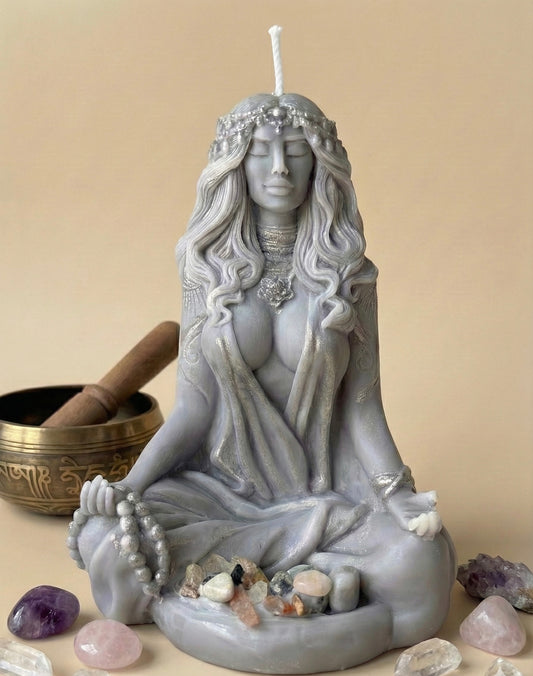 Meditating Goddess Candle with Crystals, Yoga Decor Ritual Candle, Spiritual Gift for Her, Zen Home Decor, Mindfulness Altar Candle