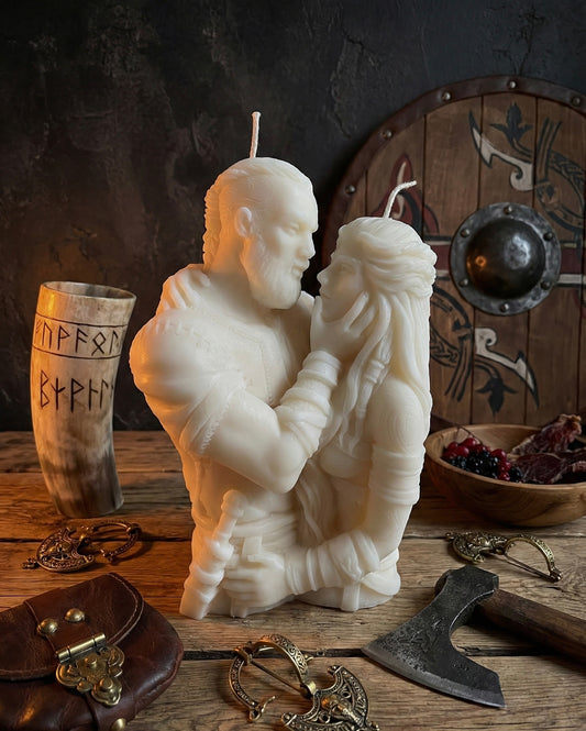 Viking Couple Candle - Norse Mythology Decor - Hand-Poured Sculptural Candle - Home Decor - Eternal Love Bust Candle - Anniversary Gift