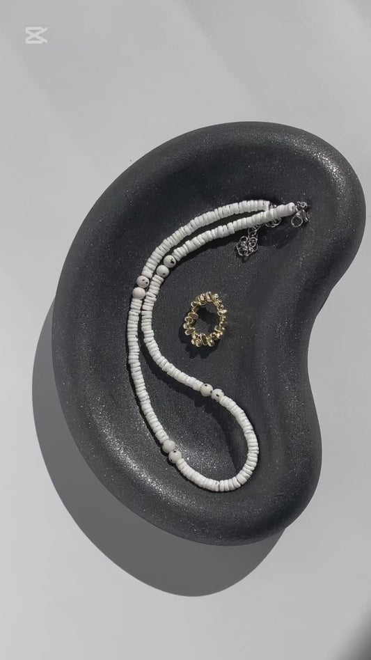 Majestic Bean Oval Plaster Tray | Space Silver Handcrafted Jewelry Dish