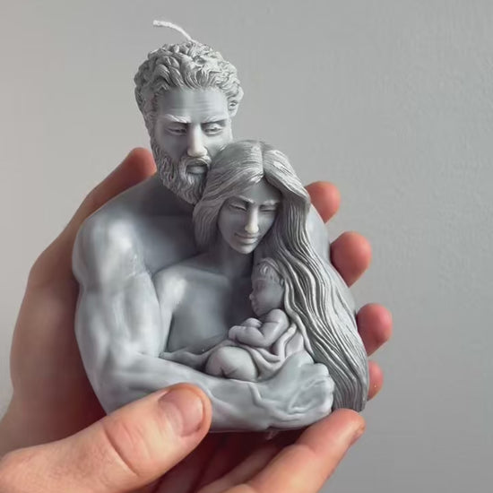 This deeply emotional piece captures a tender moment between a father, a mother, and their newborn baby. With its incredible detail and serene grey finish, this sculpture-candle serves as a powerful symbol of love, protection, and new beginnings. It is an ideal gift for those celebrating a new addition to the family or as a meaningful centerpiece for a family home.