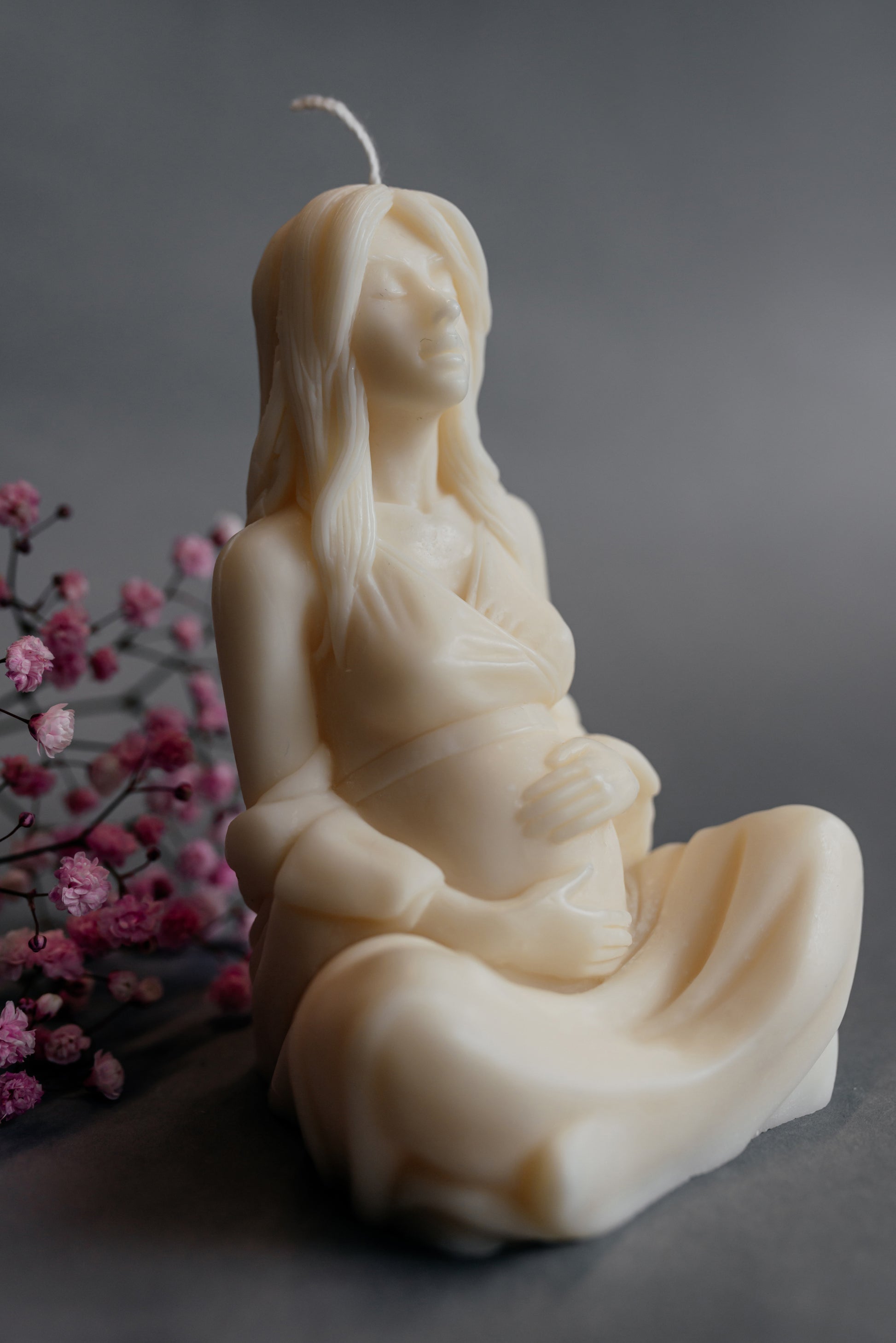 🤰 This unique soy wax candle, shaped as a pregnant woman gently holding her belly, symbolizes the beauty of motherhood and anticipation.