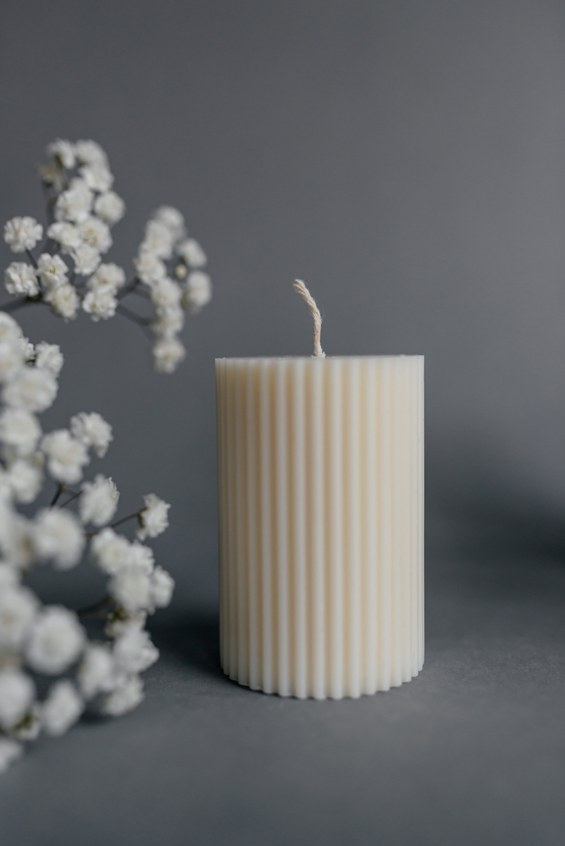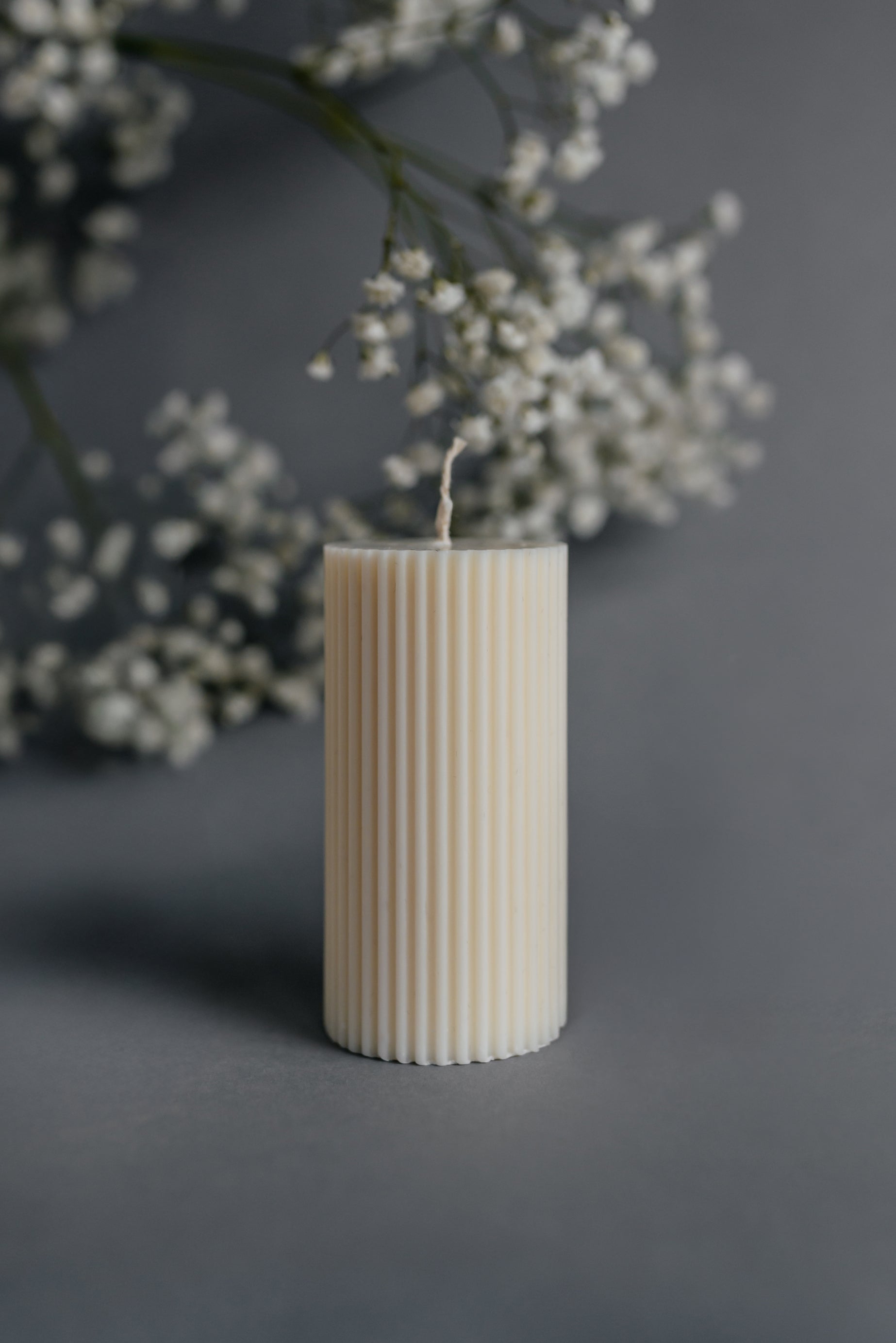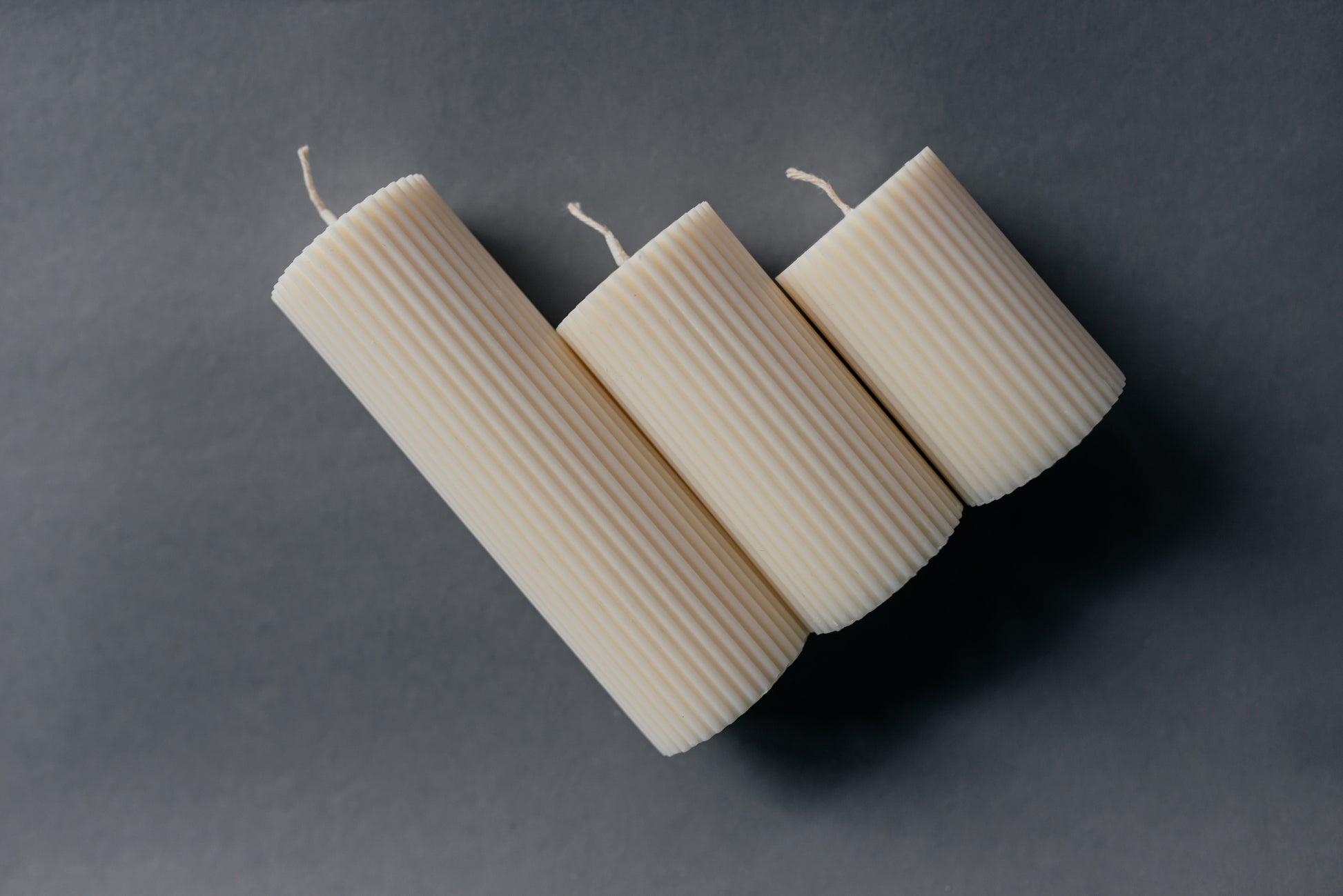 Set of 3 Ribbed Pillar Candles | Ivory Soy Wax Home Decor