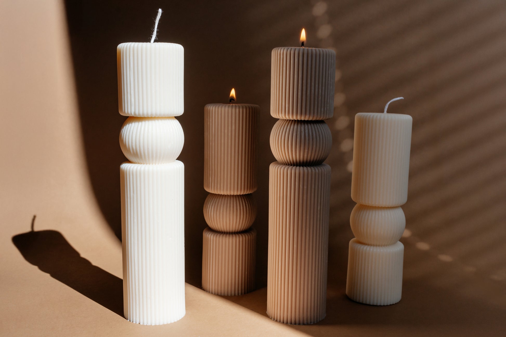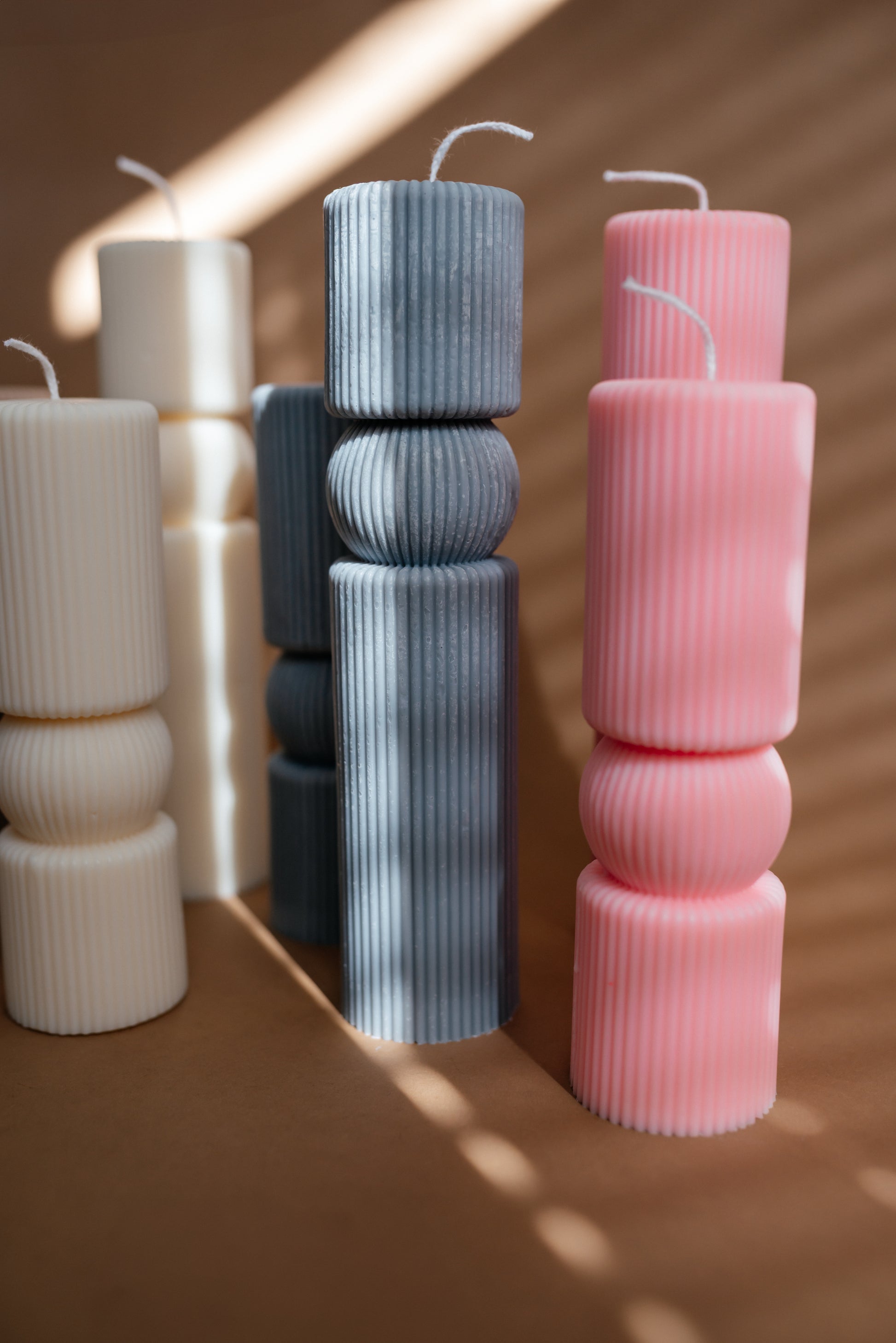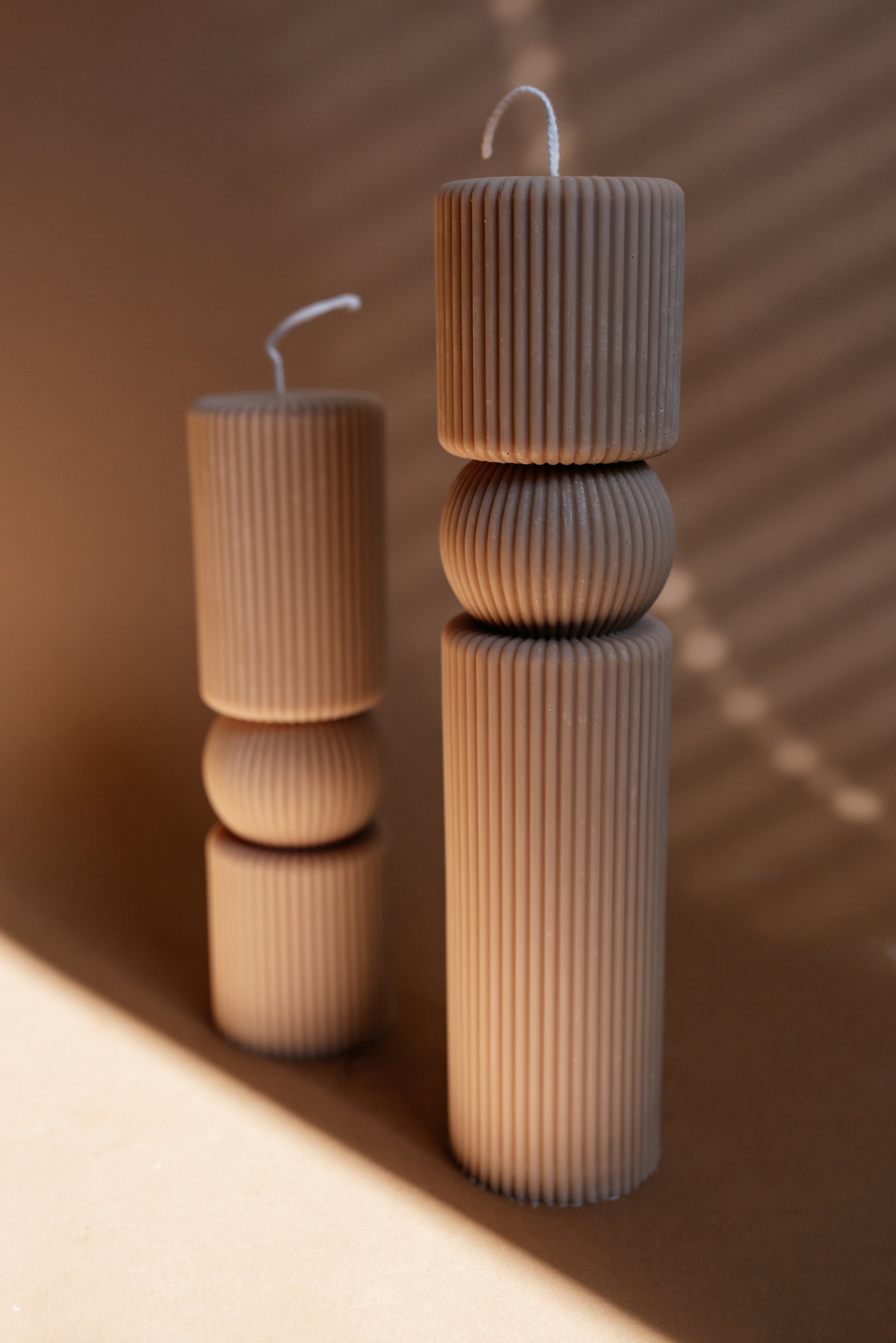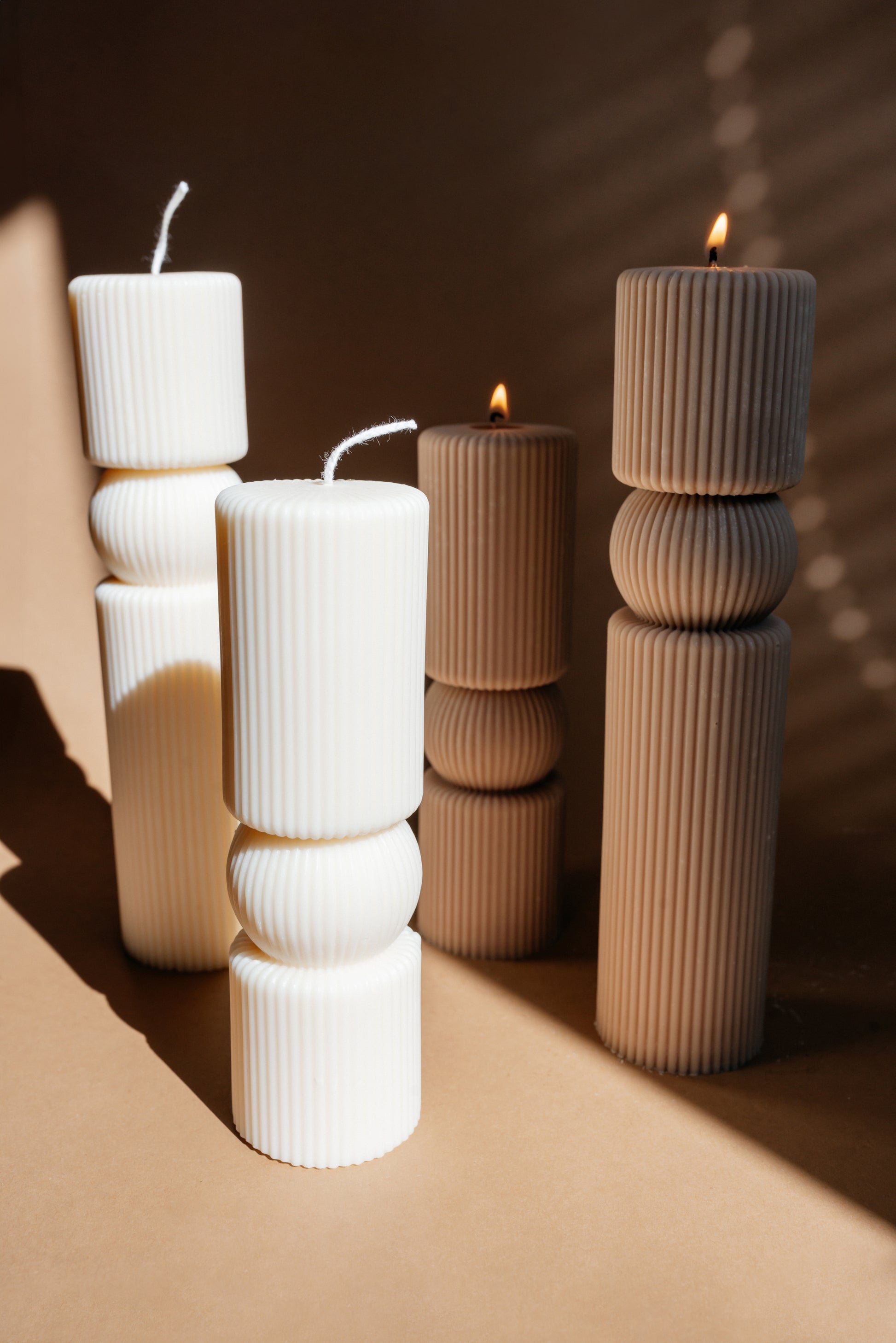 Set of 2 Sculptural Soy Wax Roman Column Candles – Classic Home Decor – Handcrafted Gift Idea