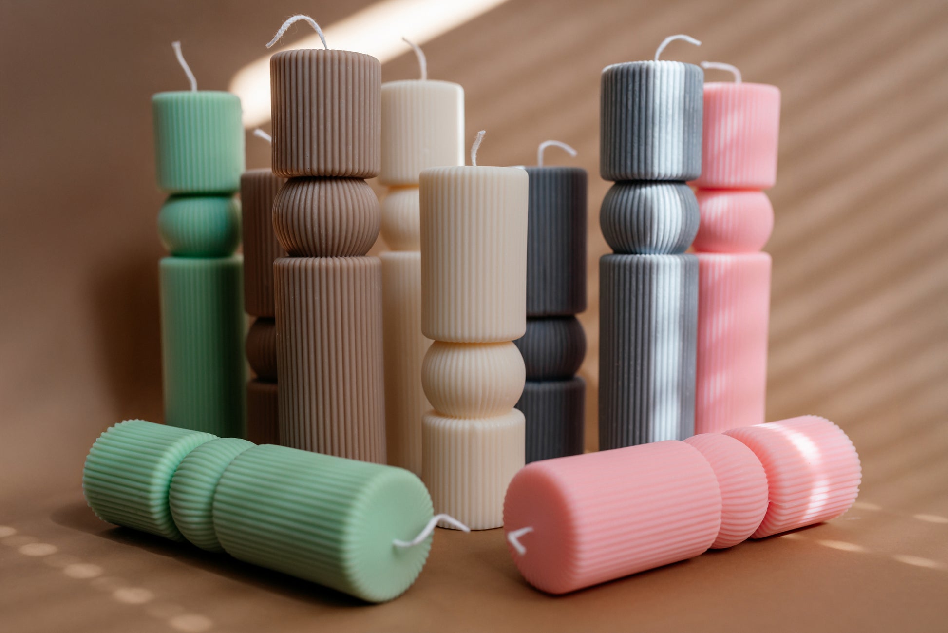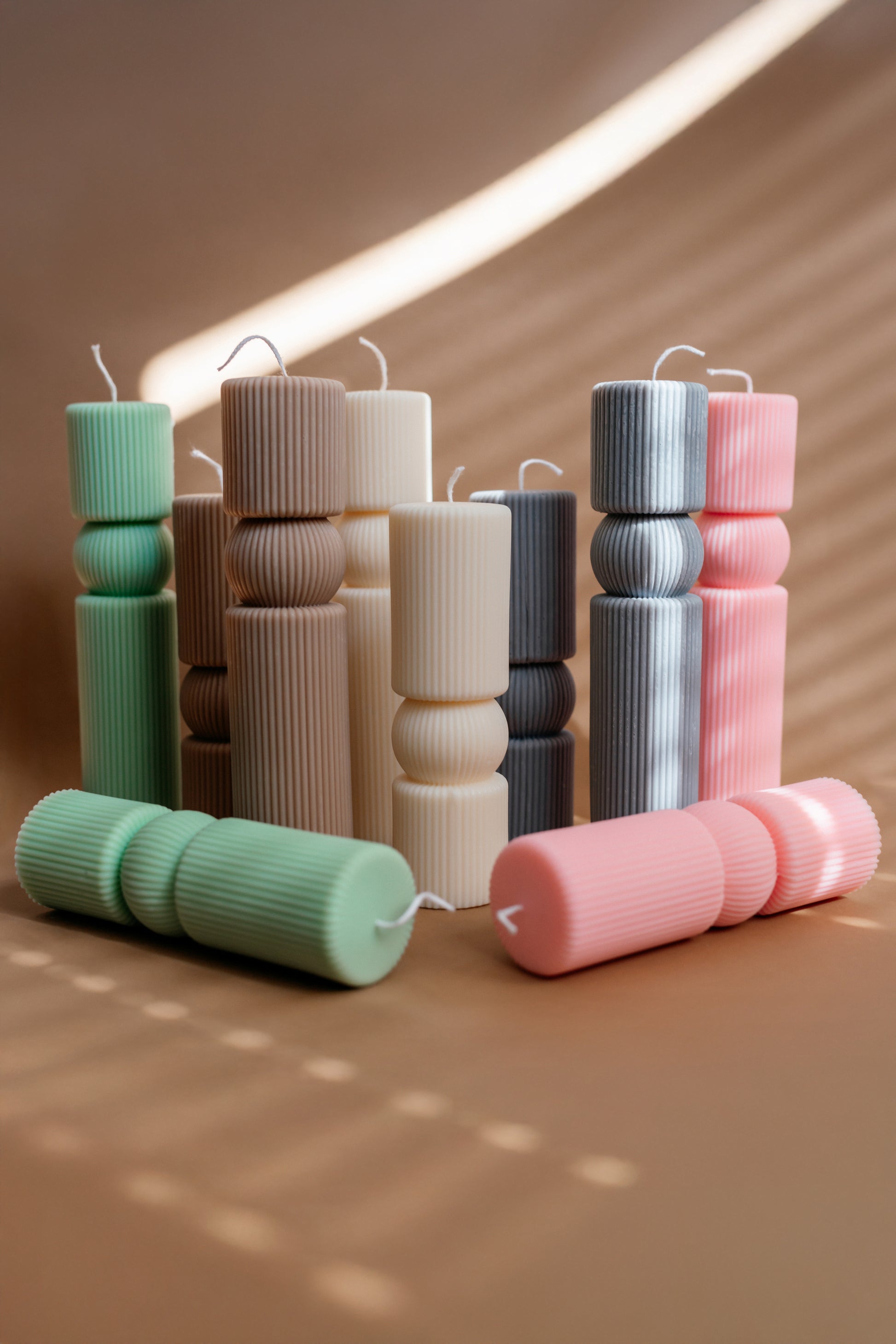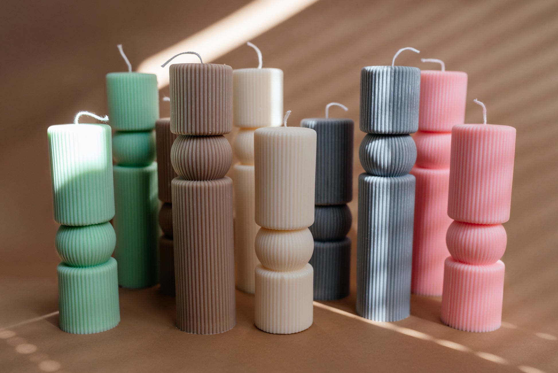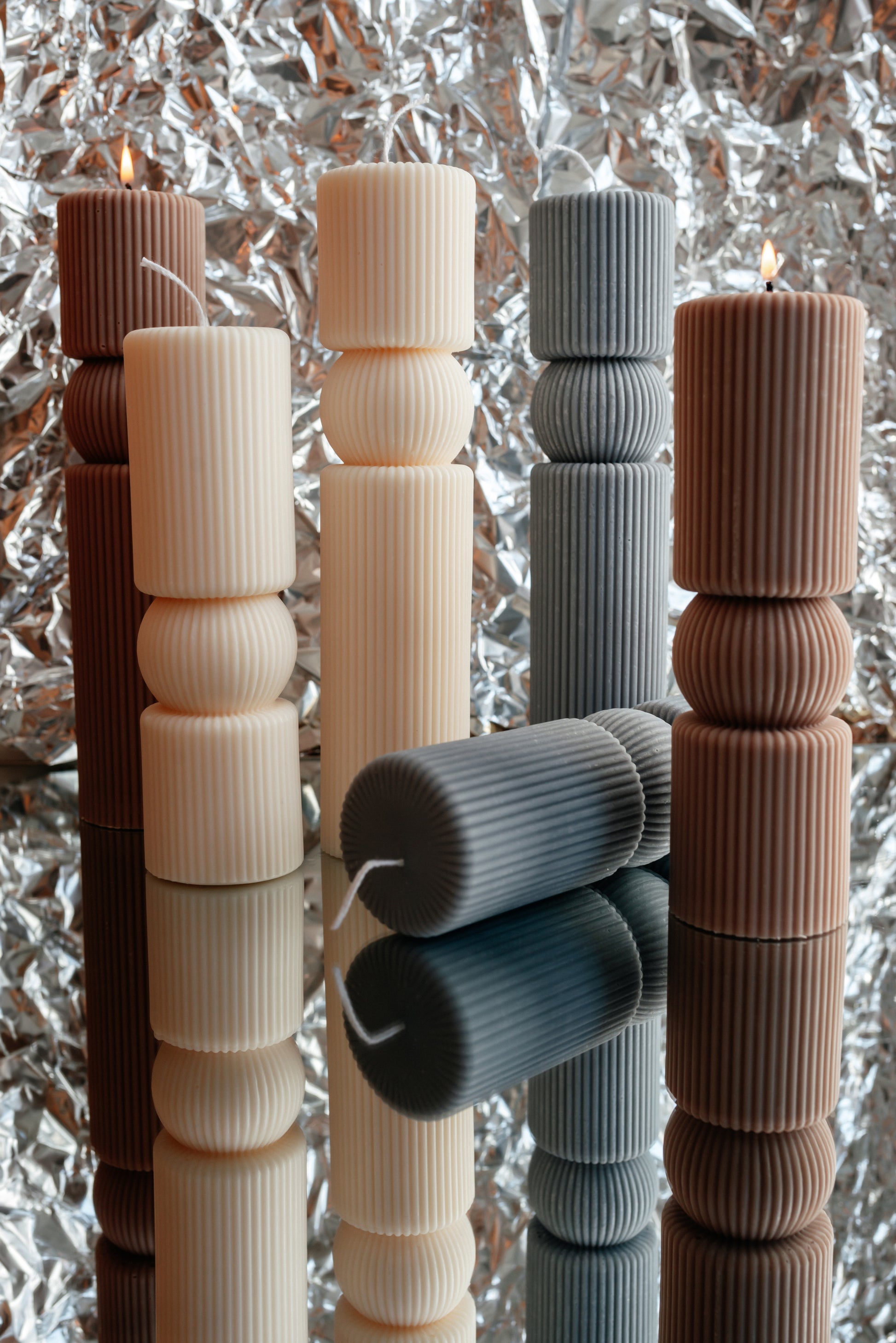 Set of 2 Sculptural Soy Wax Roman Column Candles – Classic Home Decor – Handcrafted Gift Idea
